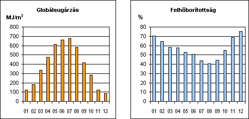 4. ábra: Magyarország globálsugárzása és felhőborítottsága